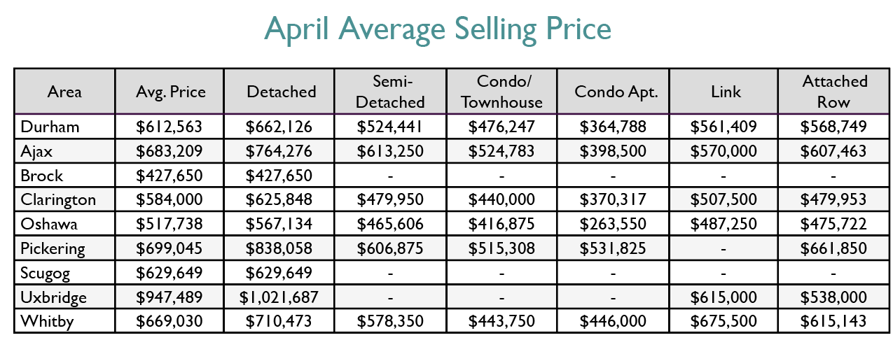 April 2020- Durham Region Homes Sales Stats- Average Prices