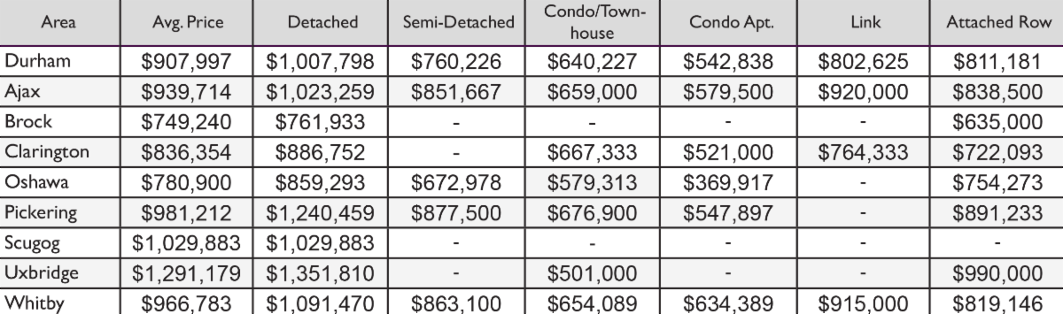 August 2024- Durham Region All Home Types Sales Stats- Average Price