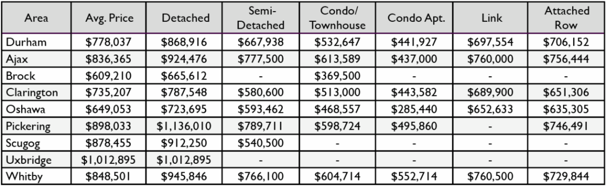December 2020- Durham Region Average Price Stats