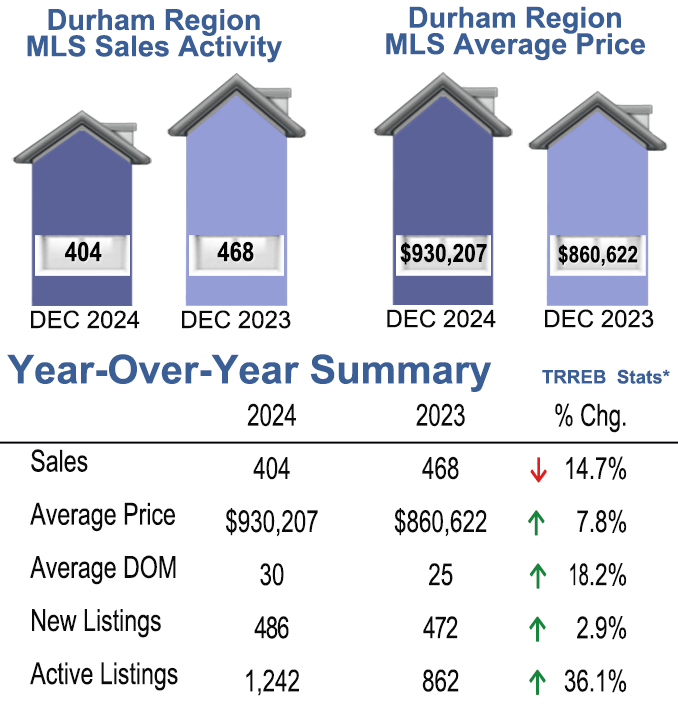 December 2024 Durham Region Sales Stats, Year Over Year Summary