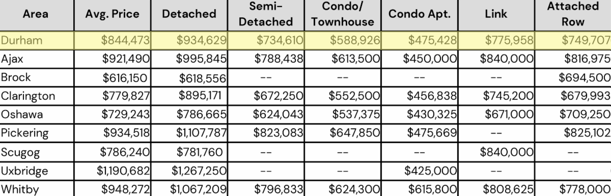 December 2025- Durham Region All Home Types Sales Stats- Average Price