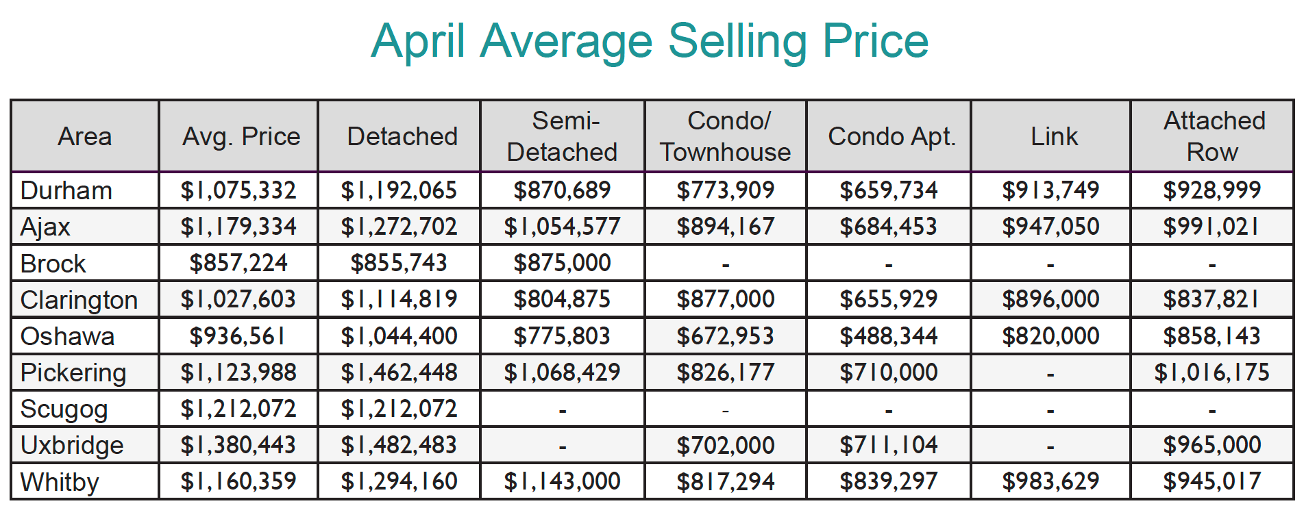 Durham Region Average Price Stats- April 2022
