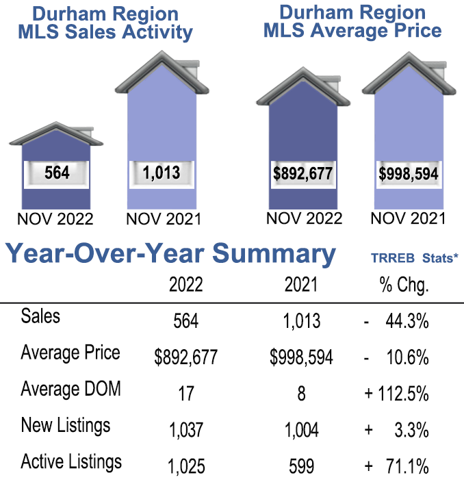 Durham Region Sales Stats- November 2022, Year Over Year Summary