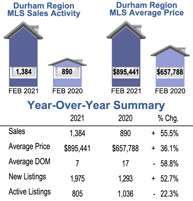 February 2021- Durham Region Homes Sale Stats- Year over Year Comparison