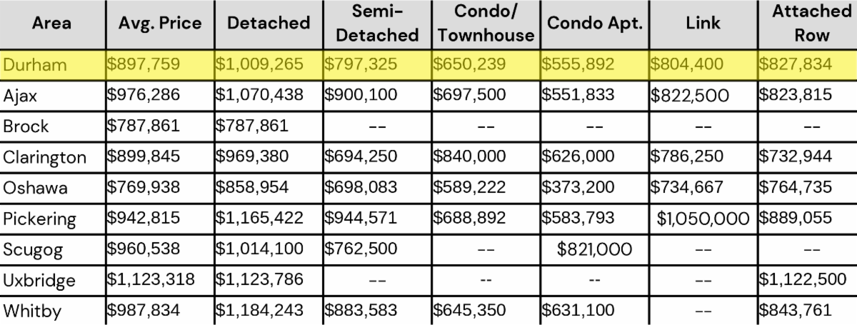February 2025- Durham Region All Home Types Sales Stats- Average Price