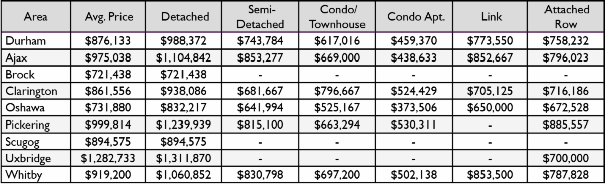 January 2021- Durham Region Average Price Stats
