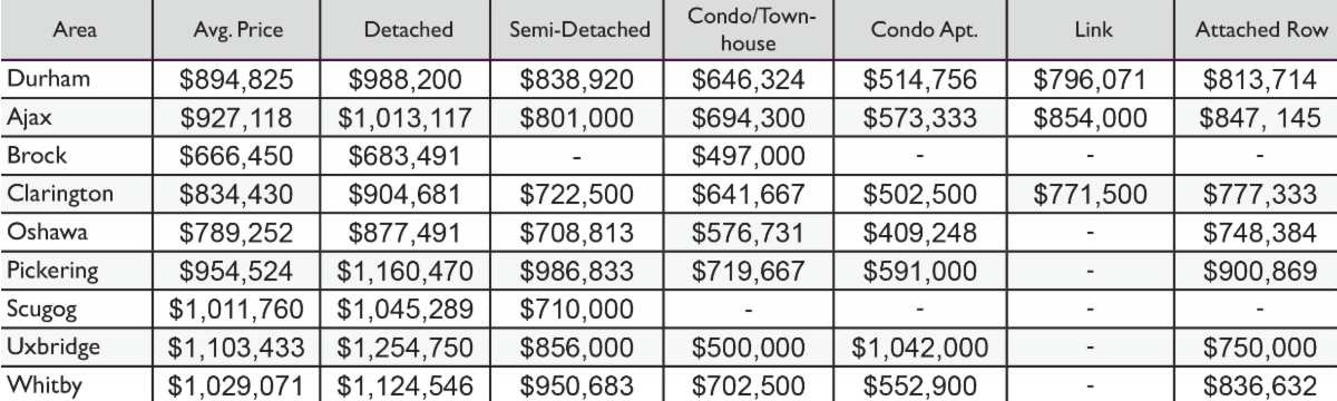 January 2024 Durham Region Average Price Sales Stats- All Types