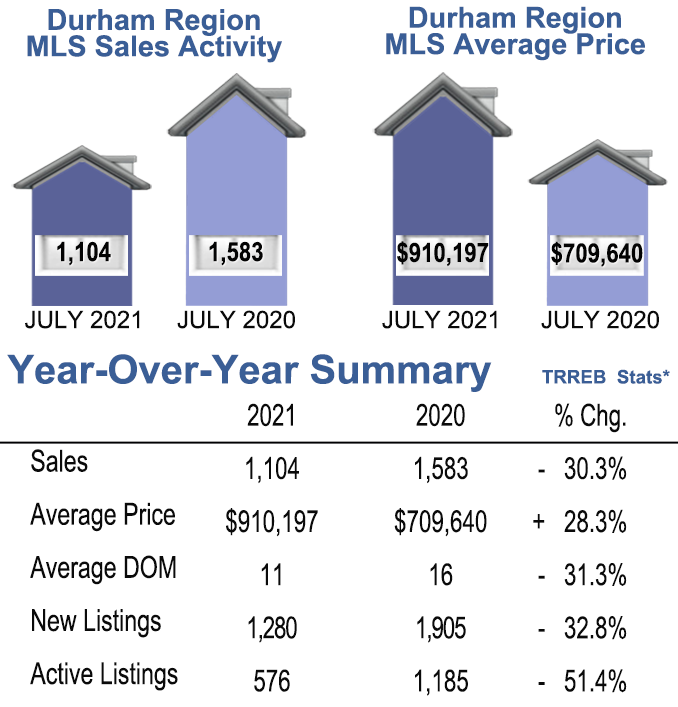 July 2021-Durham Region Homes Sale Stats- Year over Year Comparison