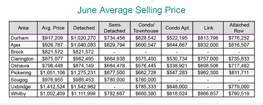 June 2021- Durham Region Average Price Stats
