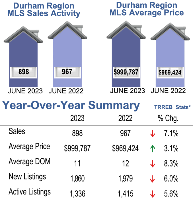 June 2023 Durham Region Sales Stats, Year Over Year Summary