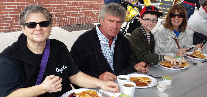 It was a perfect day. The weather was not too hot and not too cold. The sun shone brightly. Mincom Jo, Anna Stinson, her grandson Jack and Chris Cleaver couldn’t resist the call of the maple syrup. Of course, there is only one way to start the day at Maplefest — pancakes & sausages covered in maple syrup. The anticipation was almost unbearable as they moved through the line and found a table with their mouths watering the whole time.