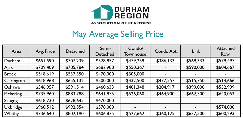May 2020- Durham Region Homes Sales Stats- Average Prices