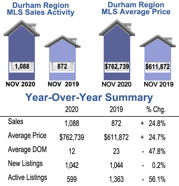 November 2020- Durham Region Home Sales Prices- Year Over Year Comparison