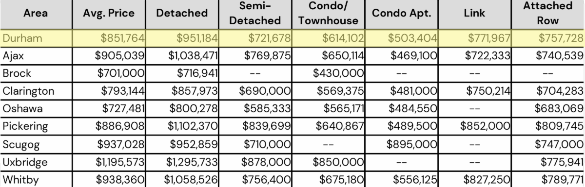 October 2025- Durham Region All Home Types Sales Stats- Average Price