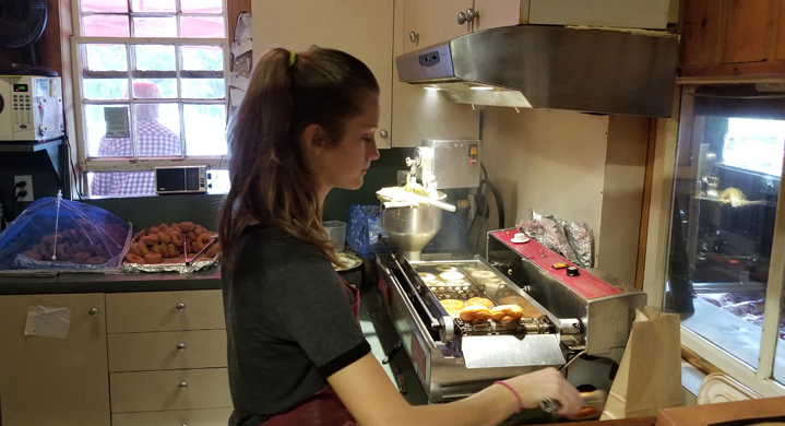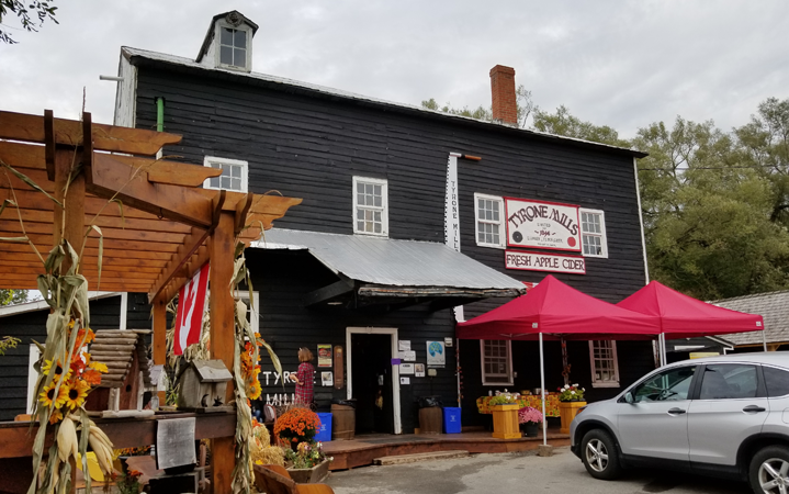 “In 1846 this was a flour mill, shipping flour as far as Great Britain and the US. As things changed in the late 1800s, the small country mill couldn’t afford new machinery to keep up with the times, so it became a feed mill. In the 1950s the saw mill was added. Since then, it has been an apple cider producer, a bakery, a historic landmark and a vital part of the community”.