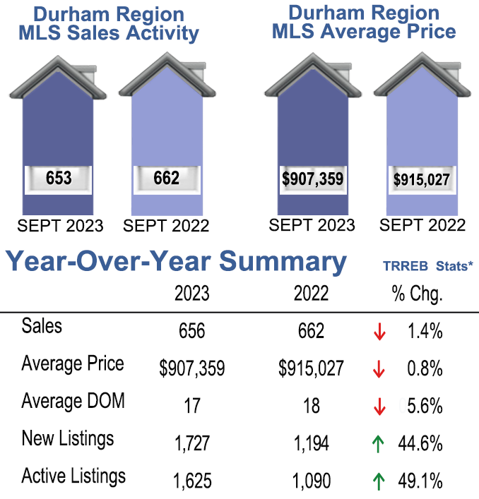 September 2023 Durham Region Sales Stats, Year Over Year Summary