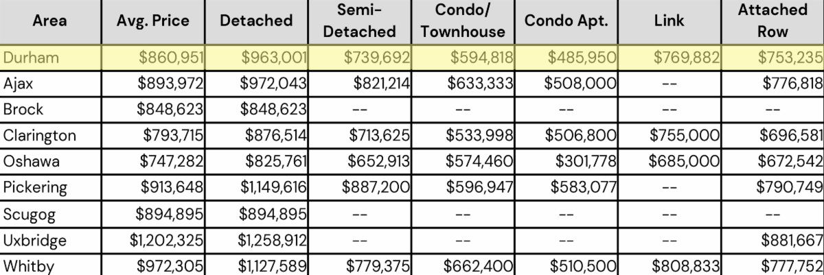 September 2025- Durham Region All Home Types Sales Stats- Average Price